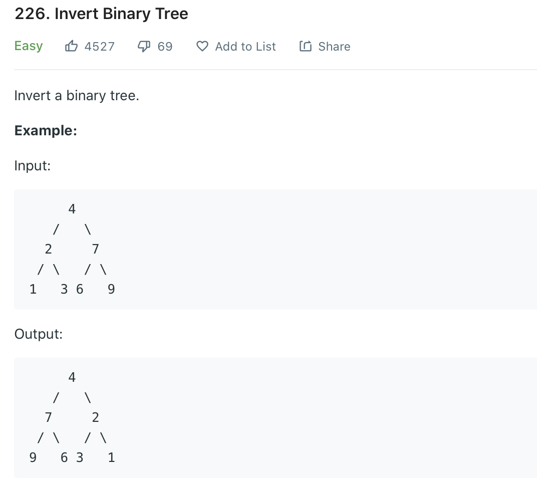 Root 4271369 Output. Definition for a binary tree node. LeetCode Invert Binary Tree Java Java Solution 1 - Recursive.